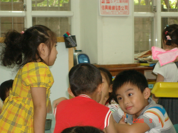哥哥上幼稚園大班了,班上來了好多新同學和新爸比媽咪,今天對許多爸比媽咪而言應該是很難忘的,因為家裡的小寶貝第一次上學,在教室內總看到許多關愛的眼神,擔心的眼神.....也讓我想起我們家哥哥的第一次上學,真是該發生的狀況都發生了,還記得上學的前一天,他還開心的期待去上學,背著最愛的海綿寶寶書包到處走來走去,嘴裡唸唸有詞的説著,我要去上學,我要去上學了,YA...開學日當天寶貝卻賴在床上,哭著說......我不想去上學,媽咪我還特地煮了一桌豐富的早餐,寶貝卻説,我吃不下,還一副我想吐的樣子,真傷我的心,果然是沒吃就去了學校,更糟的,去了教室,老師說集合坐好,哥哥終於哭了,因為忍了好久,結果一發不可收拾,一個小朋友哭,變成好幾個小朋友哭,好像傳染病般,老師忙著一一安撫,哥哥被老師帶走了 ,哭哭的罪魁禍首,就這樣一連好幾天的哭哭戲碼持續上演,不吃點心,不吃午餐,老師也粉頭痛,整整適應一個月才OK 。