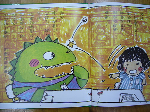 在美穗心目中,阿達就像一隻可怕的綠色恐龍,成天糾正她東西沒吃完,又嘲笑她不會算術、不會跳繩,讓她每天精神緊繃、挫折不已。然而,居於劣勢的美穗有一天突然發威了,這突如其來的舉動,不僅嚇著了阿達也嚇壞了自己,逃避上學的念頭由然而生。而最終一句遲來的道歉,化解了兩人對立的緊張氣氛,頓時陰霾全開,只是,這樣的和平能維持多久就不得而知了。